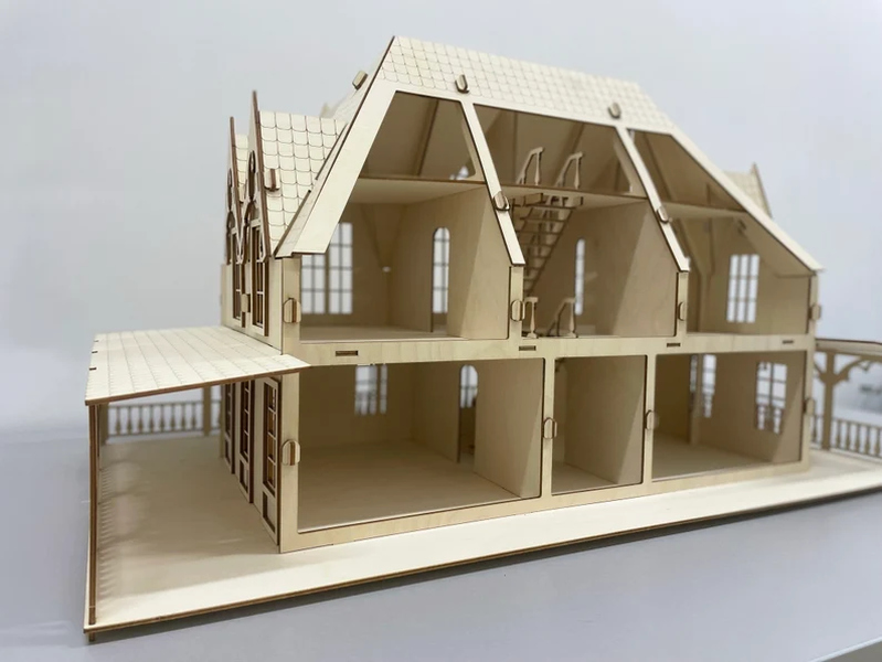 This detailed wooden miniature house model showcases precision craftsmanship. A perfect addition to any collection, it offers a realistic and elegant portrayal of a house’s architecture.